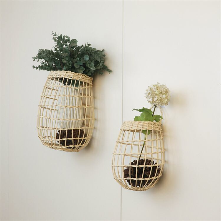 北欧デザイン レトロ籐編み キッチン収納バスケット 壁掛け フラワーバスケット