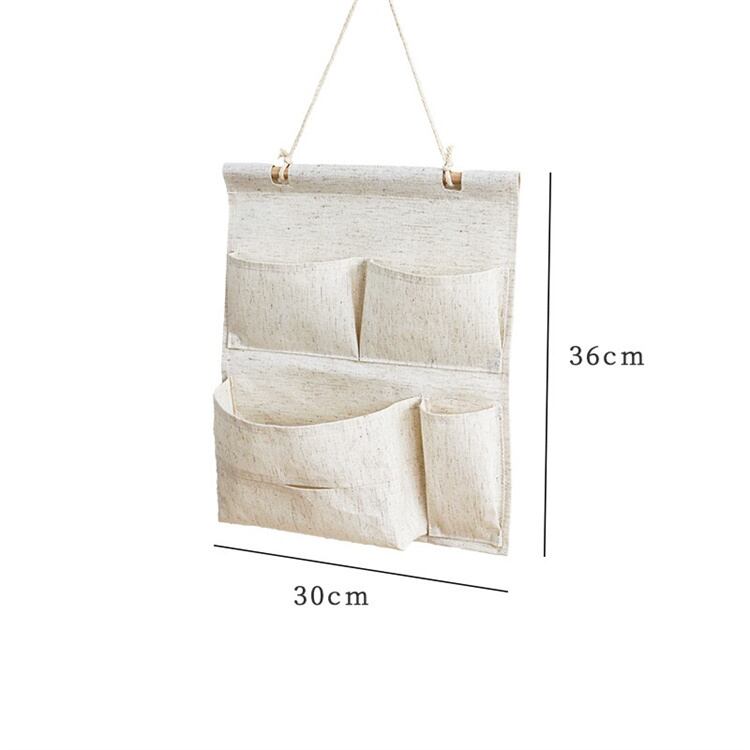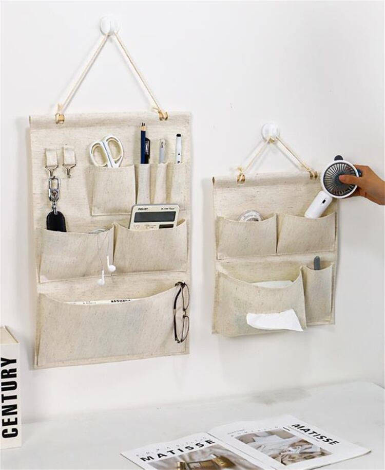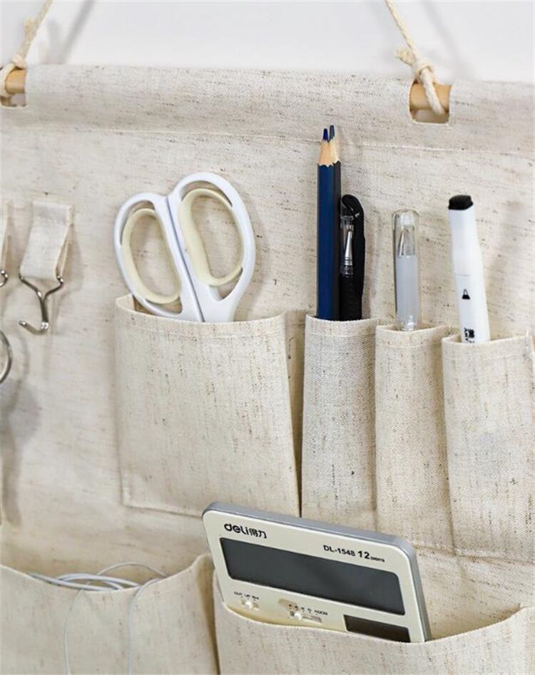 マルチ収納ポケット 壁掛け ドアフック両用 学生寮 部屋収納 綿麻布製 シンプルデザイン