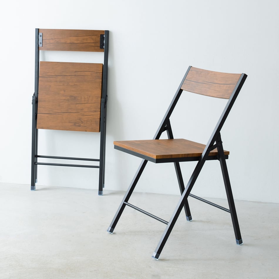 シンプルさが際立つスチール×木目の折りたたみチェア